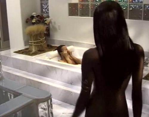 Черная голая негритянка пришла на секс с белым парнем в ванной