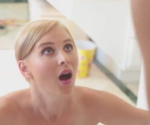 Невнимательная молодая мачеха Алиса Чамберс за шторами для ванны перепутала с мужем хитрого пасынка, который удачно подсунул ей член в душе. Голый хитрец подстроил всё так ловко, что милфа в полотенце без задней мысли стала сосать хуй считая, что делает минет любимому мужчине, но когда занавески открылись и она увидела сына, то сама обалдела от такой роковой ошибки. Быстро смирившись со злой шуткой 20-летнего парня тридцатилетняя блондинка решила закончить случайную измену и продолжила трахаться с сыном своего мужа, которого не было дома.