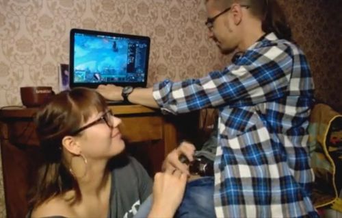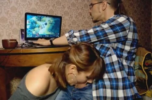 Девушка делает домашний минет пока парень играет в Доту за компом