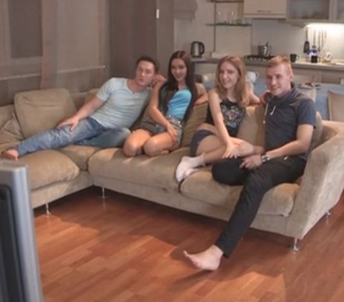 Про то, что смотреть порево это весело, знает каждый, потому дружная группа молодых ребят собралась дома для совместного просмотра порно, да так возбудилась, что устроила свою реальную русскую порнуху на квартире. С самого начала возбуждающего порнофильма про свингеров друзья стали бурно обсуждать и комментировать действия героев, а потом им самим захотелось попробовать трах в живую. Возбужденные студенты стали раздеваться и синхронно заниматься предварительными ласками на диване, где затем занялись дружеским пиздатым сексом с обменом партнёрами.