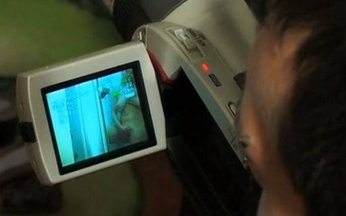 Зная, что подглядывать не хорошо, муж вуайерист незаметно снял на камеру мастурбирующую в душе голую молодую женушку, а затем сел подрочить на скрыто снятую мастурбацию. За дрочкой члена муженёк так увлёкся, что не заметил, как жена вышла из душа. За его спиной она увидела частное видео со своим участием, немного отругала муженька за подсматривание, но обратив внимание на его хороший стояк отдалась сильно возбужденному парню. Сочную попу любимой девушки супруг расколол твердым хером как большой орех и не вынимая кончил в жопу, до краёв заполнив спермой женское очко.