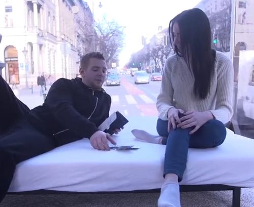Русская студентка в Европе продалась за деньги в стеклянном фургоне