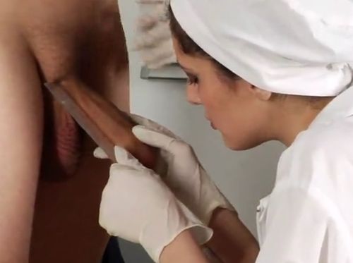 Молодая врачиха с медсестрой решили постебаться над пациентом, который опоздал к ним на медицинский осмотр, и провести необычный приём с тщательным обследованием, пригрозив при следующем опоздании поставить ему клизму. Похабных шуток молоденьких медработниц пацан не понял, потому делала всё, что приказывали ему две развратные девушки в униформе. После того, как он разделся, докторша с ассистенткой измерили член линейкой, а потом стали проверять его стояк, мастурбируя ногами, после чего надумали взять сперму на анализ у парня, причём сами выдрочили всё до капли, занимаясь эротической фемдом мастурбацией в чулках.
