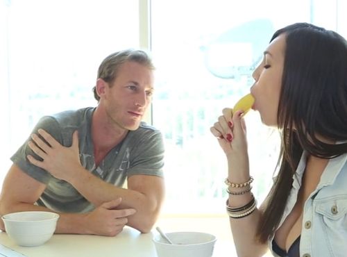 За завтраком жена засунула банан глубоко в рот и этим соблазнила мужа