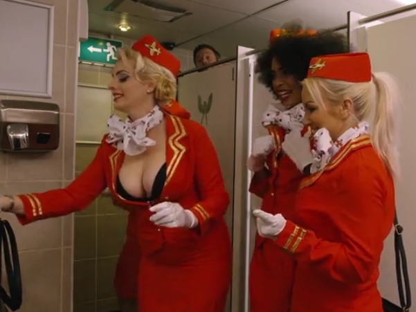 Пассажир авиакомпании Digital Playground так сильно хотел сходить по-маленькому, что по ошибке зашёл в уборную для женщин, где случайно подслушал разговор грудастых стюардесс, куда никак не вписывалась чернокожая бортпроводница с маленькой грудью Луна Коразон. Когда все разошлись и красивая негритянка осталась одна в туалете, её губная помада упала на пол и закатилось прямо под дверь туалетной кабинки мужчины, так она спалила его, но узнав, что белому мужику нравятся темнокожие африканки с сисечками 1 размера, прямо на месте решила отдаться. Бурный междрасовый секс в тесном пространстве общественного сортира, где они ебались, привлёк внимание даже коллег по работе, поскольку громко стонала негритоска, да и стены ходили ходуном.