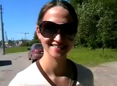 Мужик из США приехал на секс-охоту в Россию, да не куда-нибудь, а в провинцию, где, в отличие от больших городов, приезжие иностранцы вызывают интерес у девушек. В своём непрофессиональном порно кустарного производства сам себе режиссёр и пикапер начал клеить первую попавшуюся провинциальную студентку в солнцезащитных очках. Настоящий развод на секс девки. плохо говорящей по-английски, занял определённое время, но зато худая сучка не просто взяла деньги за показ голой груди, а повела американца в кусты, где сделала минет и даже трахнулась на улице.
