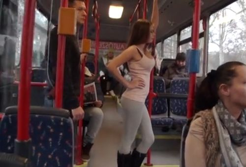 Безумный трах с незнакомцем на людях в общественном транспорте