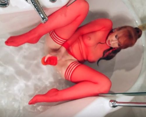 Зрелая милфа-фетишистка в чулках и красном прозрачном нейлоне без дилдо купаться не ходит. Включив воду на полную мокрая ярко рыжая женщина возбуждается от того, что скоро засунет в киску силиконовую секс-игрушку и, когда заводится от игр с самой собой наедине, развратно балуется в душе с резиновым членом. Его дамочка суёт в пизду стоя, получая удовольствие и радость от глубокой мастурбации, впрочем её соло длится не долго, ведь наскозь промокшая взрослая онанистка быстро достигает своей цели и утопает в экстазе.