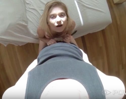 Мужик ехал в город и решил подобрать попутчицу, чья машина сломалась на дороге. Молодая худая блондиночка была настолько благодарна неравнодушному водителю, что сама предложила отсосать ему член за то, что он подвёз её. После знакомства через минет на переднем сиденье автомобиля мужчина предложил ненадолго заехать к нему домой, где от первого лица он снял, как трахнул щуплую девочку. Молоденькая блондинка разделась и ещё раз голой взяла хуй в рот, а потом поскакала на нём сидя сверху и после траха в киску съела сперму, после чего стала одеваться, ведь ей пора было уходить.