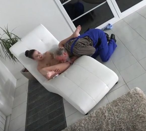 Через стекло большого дома хозяев старый дед, работавший мойщиком окон, подглядел женскую мастурбацию и запал на молодую киску хозяйки, которая голышом руками удовлетворяла сама себя возле бассейна. Девке было так хорошо, что ей самой захотелось продолжения и, когда дедок постучался к ней, голая мелкая девка в полотенце впустила и дала ему. Опытный дедушка с бородой показал крошке все возможности своего проворного языка в лизании пизды и продемонстрировал всю твёрдость старческого члена, которым долго ебал её. Девица с гулькой на голове была удовлетворена работником пенсионного возраста и даже получил от него сперму в рот, чтобы сделать приятное старому проказнику.