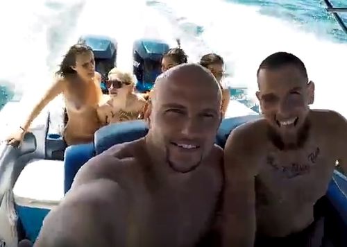 Отвязный голый трах с блондинкой и брюнеткой на катере со шлюхами