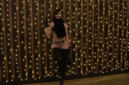 Длинноногая, тонкая, как модель с обложки, нудистка, полностью голая, кроме чёрных чулок и этих элегантных сапог на шпильке, вместе с режиссером выбралась на зимнюю эротическую ню сессию на улице. Сиськи прикрыла одним тонким шарфом, но он больше дразнит, чем греет — то и дело сползает, открывая розовые соски, которые от холода стоят колом. Соблазнительная стройная сучка ходит по пустому городскому скверу в разноцветных огнях, дыхание паром, кожа в мурашках, а глаза горят от адреналина. В какой-то момент останавливается под фонарём, скидывает шарф совсем — и вот она голая, вся на виду: стройная спина, узкая талия, упругая попка, между ног лёгкий пушок, который от мороза чуть искрится инеем. Поворачивается к камере боком, выгибает спину, сексуально позирует, показывает идеальные сиськи и эти длинные ноги в чулках — чистая эротика на морозе. Холод кусает за кожу, но ей пох, она кайфует от этого контраста: мороз снаружи и огонь внутри. В красивых позах голяком красавица демонстрирует всю себя. В общем, этой ночью получилось снять новогоднее атмосферное эро-видео с русской красавицей.