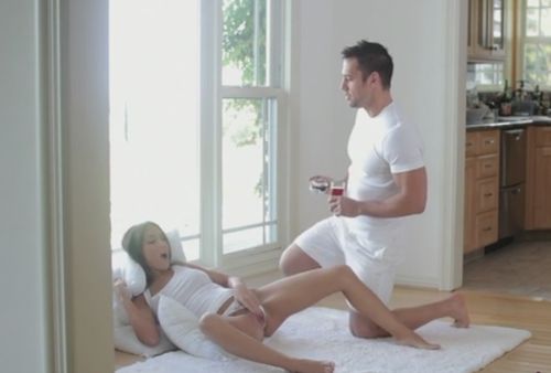 Сидя на подушке возле окна красивая стройная девушка в белом Лиз Тейлер раздвинула ноги и начала дрочить пизду пальцами, желая достичь сексуальной разрядки. В самый разгар женского соло удовольствия сексапильный бойфренд случайно увидел, как его молодая подруга страстно мастурбировала на полу, старательно утоляя сильное половое возбуждение. Парень решил помочь длинноногой брюнетке, присоединился к интиму красотки, да лично удовлетворил её неторопливым чудесным сексом с членом вместо мастурбации. Кареглазая худышка с радостью пососала желанный хуй, а потом долго наслаждалась трахом на нём прежде, чем забрызгать свои натуральные сиськи спермой любимого кавалера.