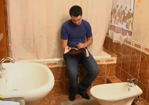 Молодая училка застала старшеклассника за мастурбацией в туалете