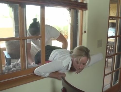 Мама залезла в окно и застряла, а два сына ей воспользовались