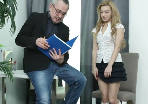 Миленькая русская прогульщица-студентка Соня Свит, не посещавшая занятий с начала семестра, накануне экзаменационной сессии явилась к зрелому преподавателю в кабинет, чтобы выпросить у него доступ к экзамену. Все уговоры светловолосой смазливой девушки были бесполезны, поскольку упрямый учитель ни в какую не хотел давать поблажку настойчивой молодой ученице в юбке, но едва красивая студенточка намекнула на секс и дала преподу, он стал более сговорчивым. Радуясь триумфу, педагог раздел красотку и пропустил милашку через сексуальное наказание, которое им обоим доставило большое удовольствие.