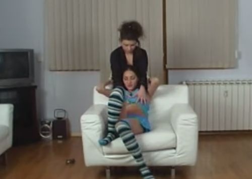 Кудрявые молодые лесбиянки, играющие в госпожу и домашнюю рабыню, устроили дома страстную лесбийскую бдсм эротику с подчинением. Используя элементы женского доминирования пышноволосая девушка в чёрном костюме привязывает свою возбужденную подругу в полосатых гольфах верёвкой к креслу, где начинает раздевать любовницу для грязных русских лесби развлечений. Пылающие страстью 20-летние девчонки, охваченные однополой любовью, трутся письками о полуголые тела друг друга и занимаются обоюдной мастурбацией на полу, где лижут делают куни в трусиках-стрингах.